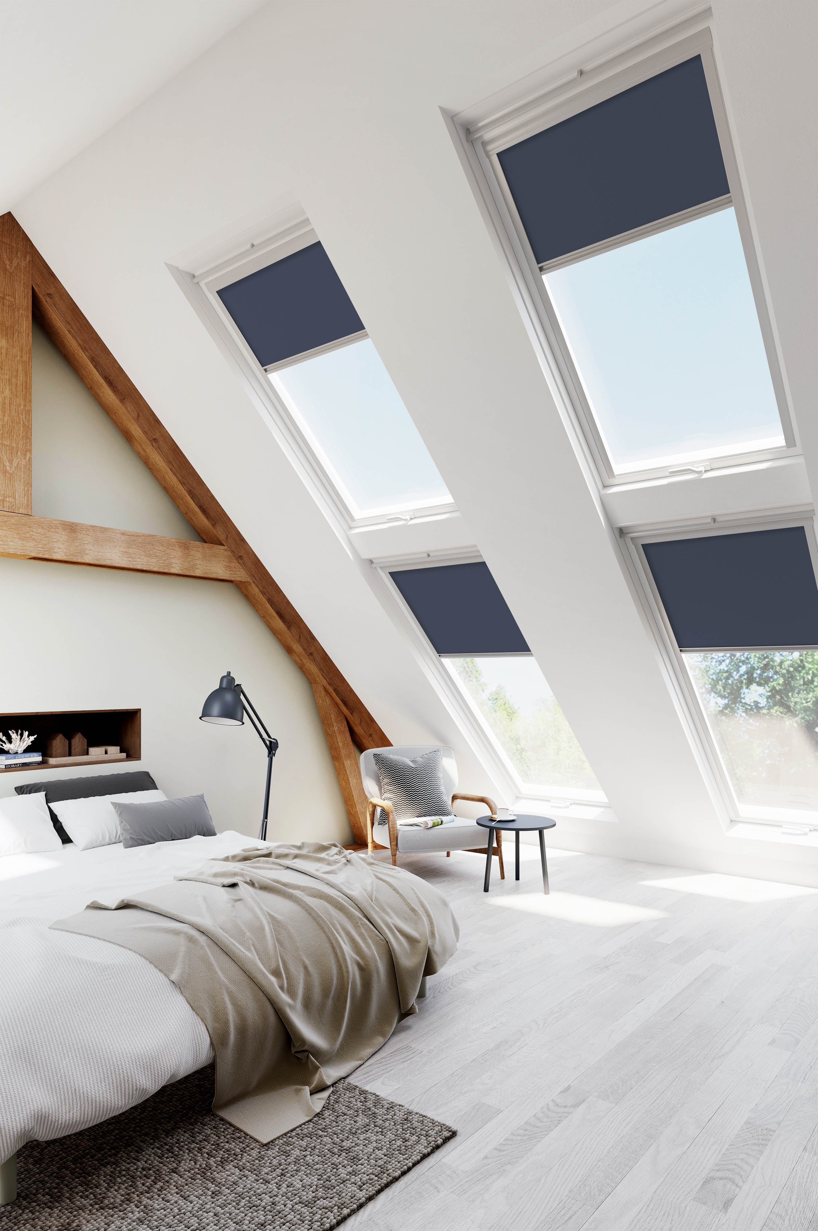 • Light control, choose how much light you want to let in with our easy to control skylight blinds;
